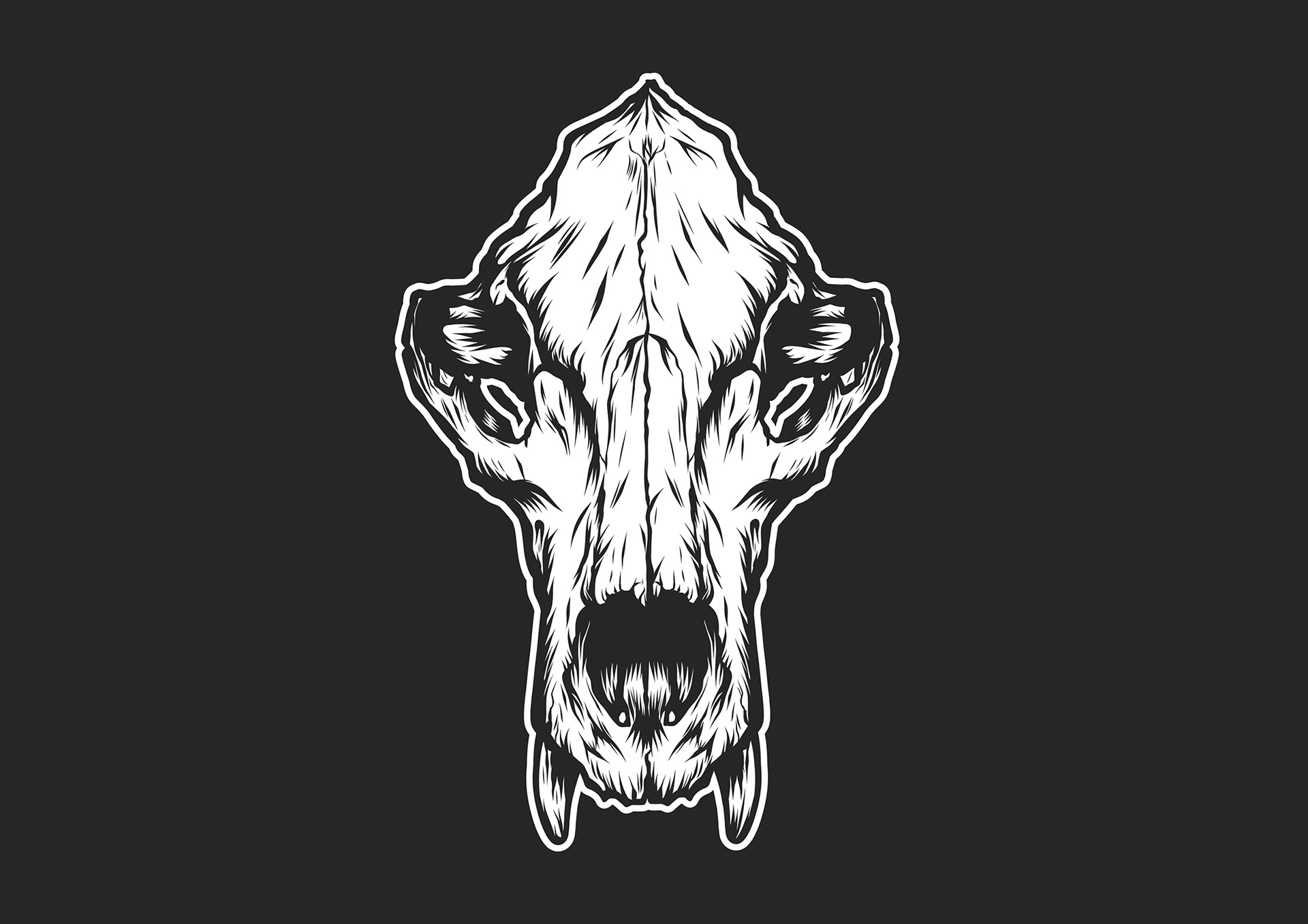 Logo artwork for Bear’s Bar, a Bournemouth-based bar and music venue. The design features a hand-drawn bear skull, illustrated in Adobe Fresco and completed in Adobe Illustrator for a bold.