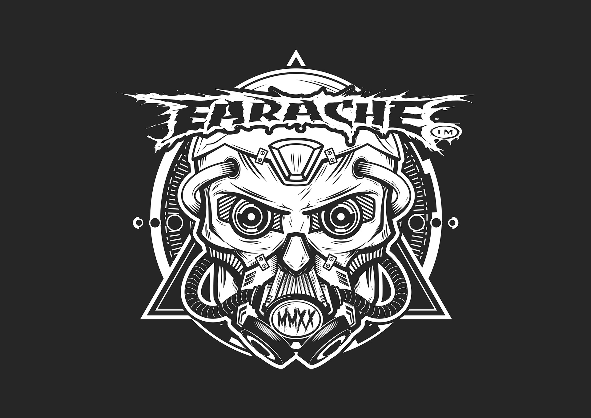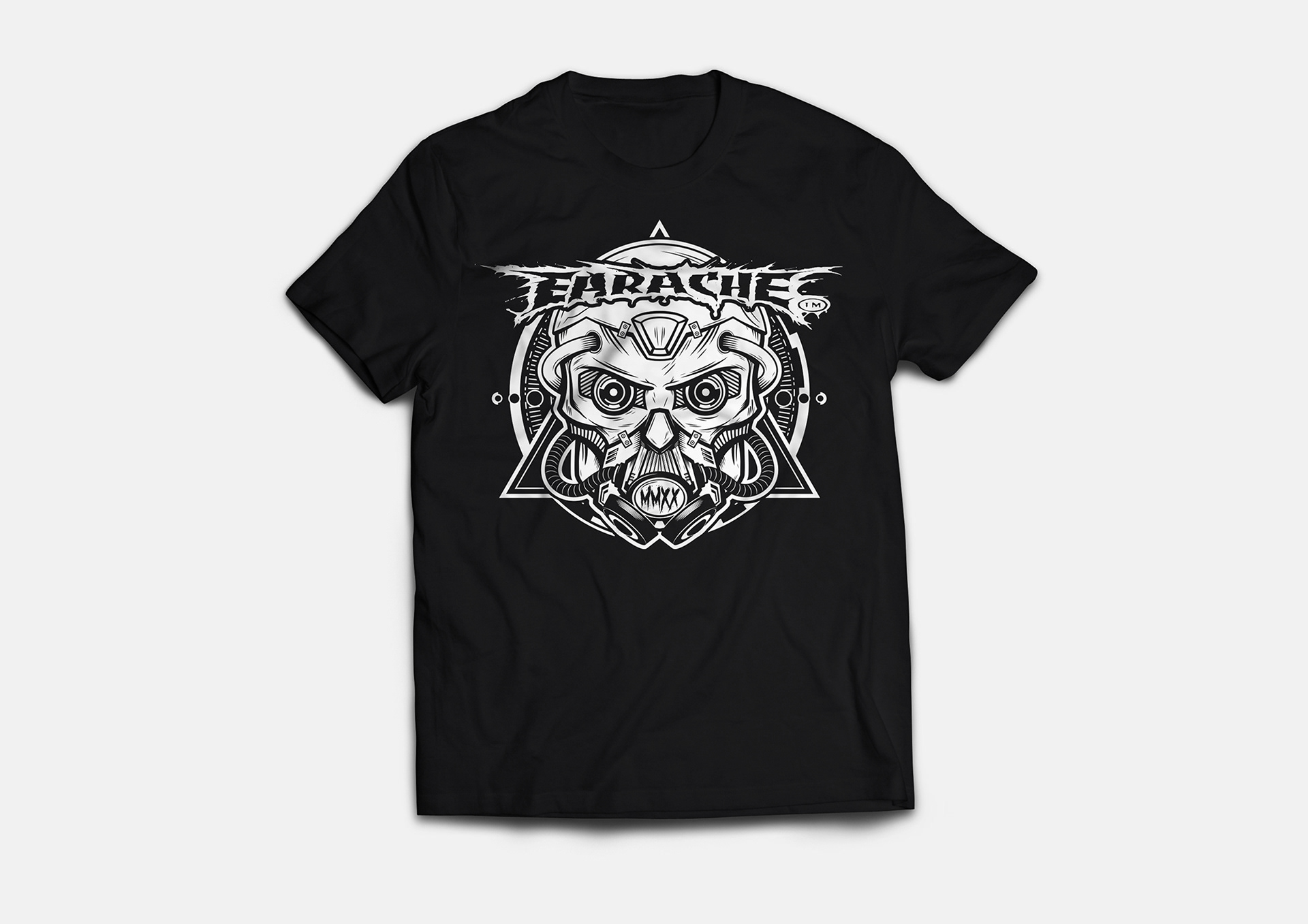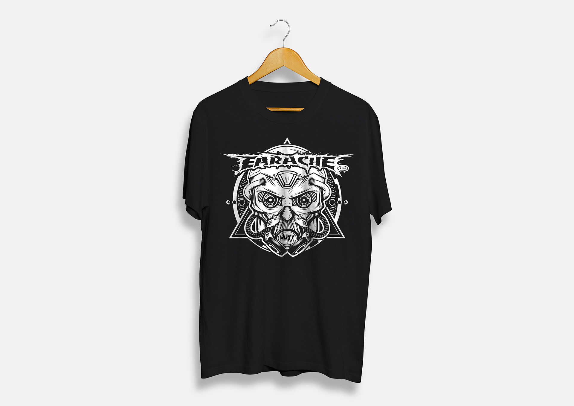 T-shirt illustration for Earache Records in 2020, and to help celebrate 35 years since being founded. The bold design features an imposing gas-mask–clad skull, rendered in a gritty, high-contrast style to bring a heavy, uncompromising edge befitting the label’s reputation.