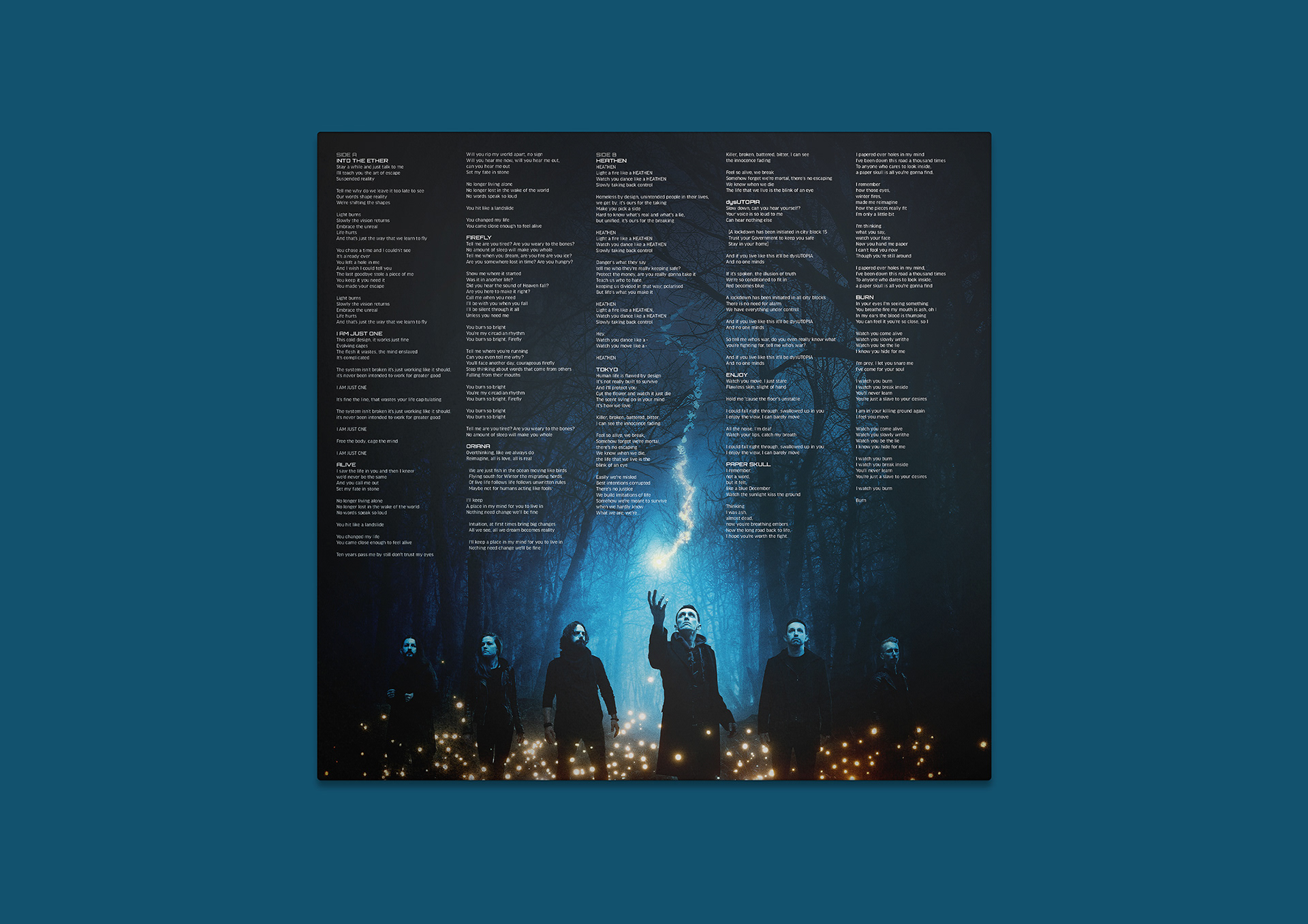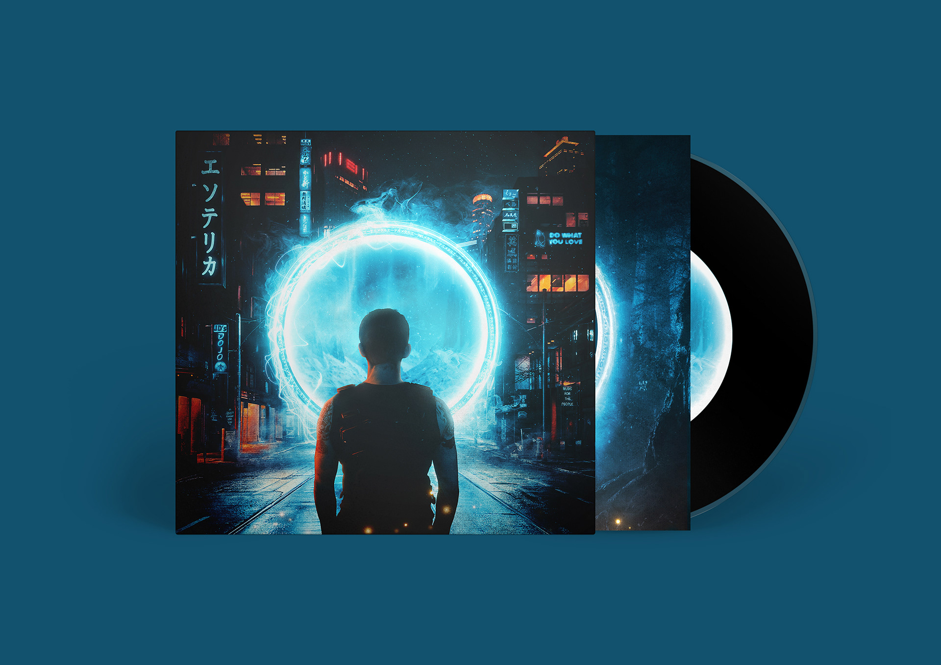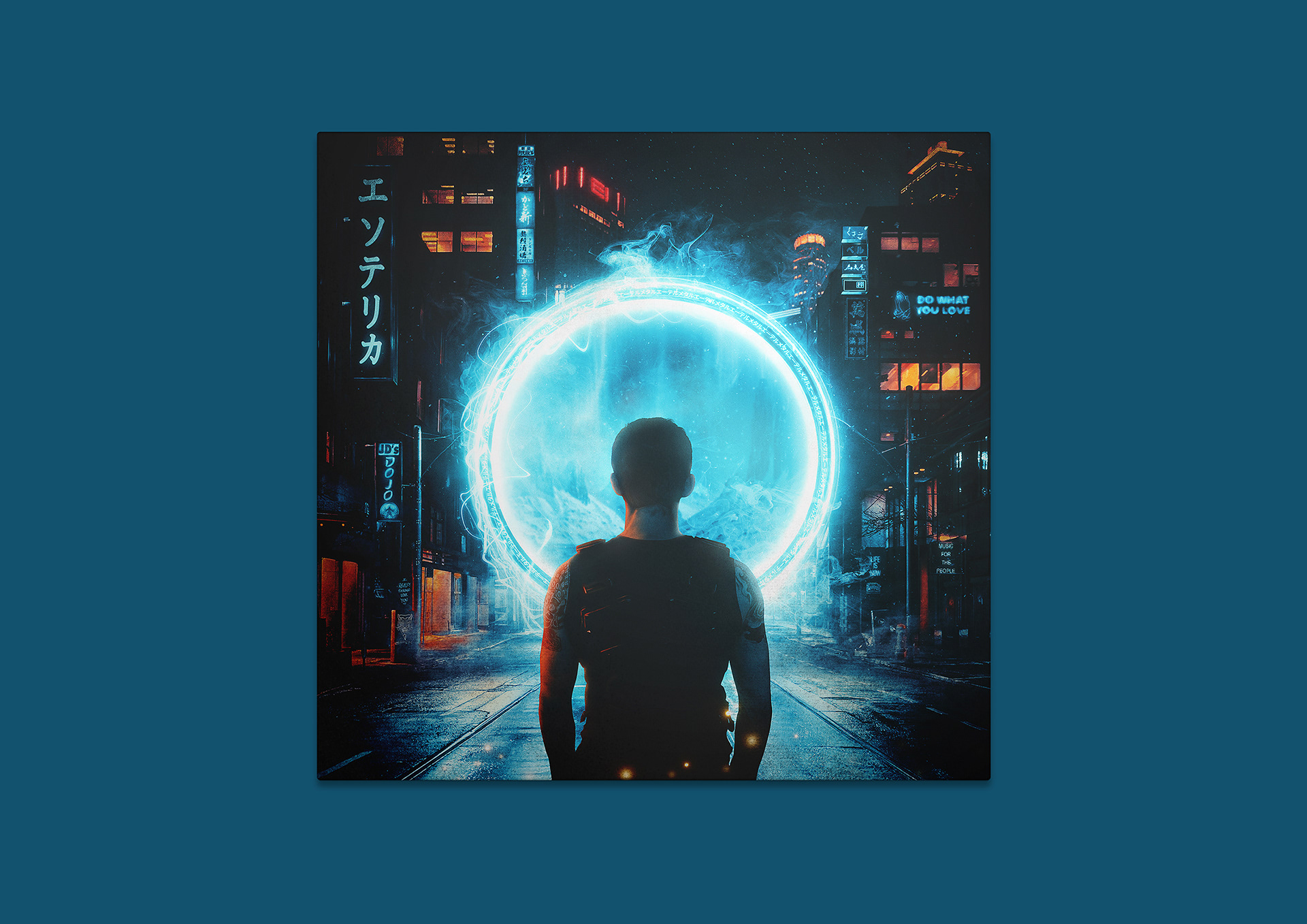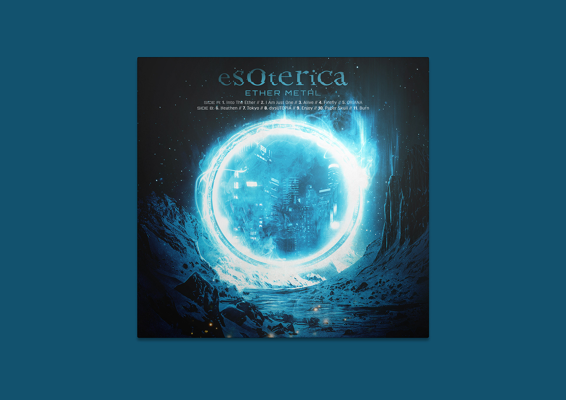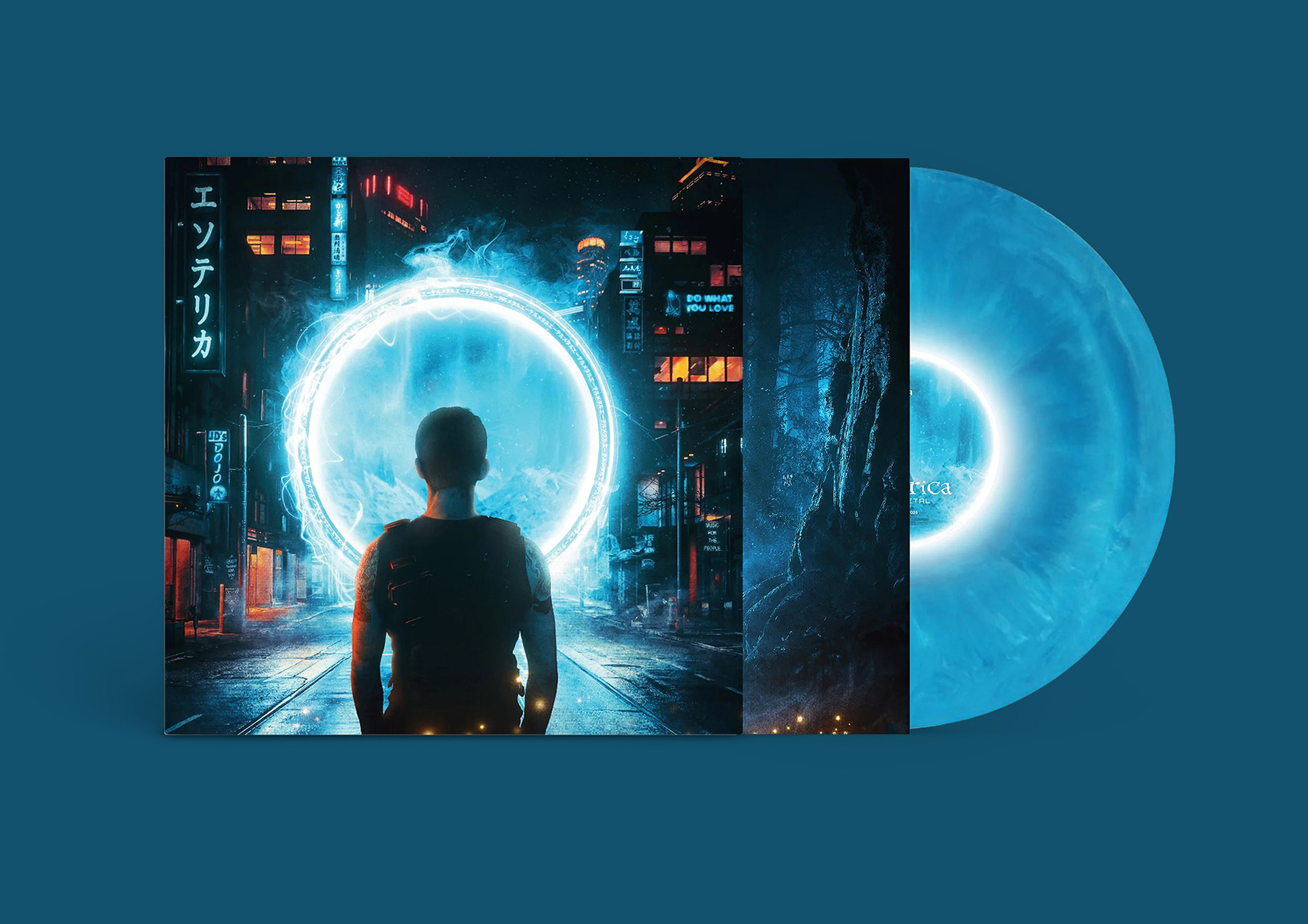 Created using non-AI techniques in Photoshop that layered and edited stock imagery then the design incorporates hidden details, such as Ether Metal and Esoterica written in Japanese, along with subtle nods to the band and their fans.