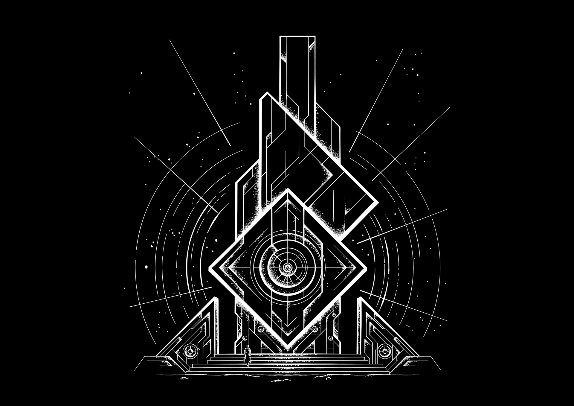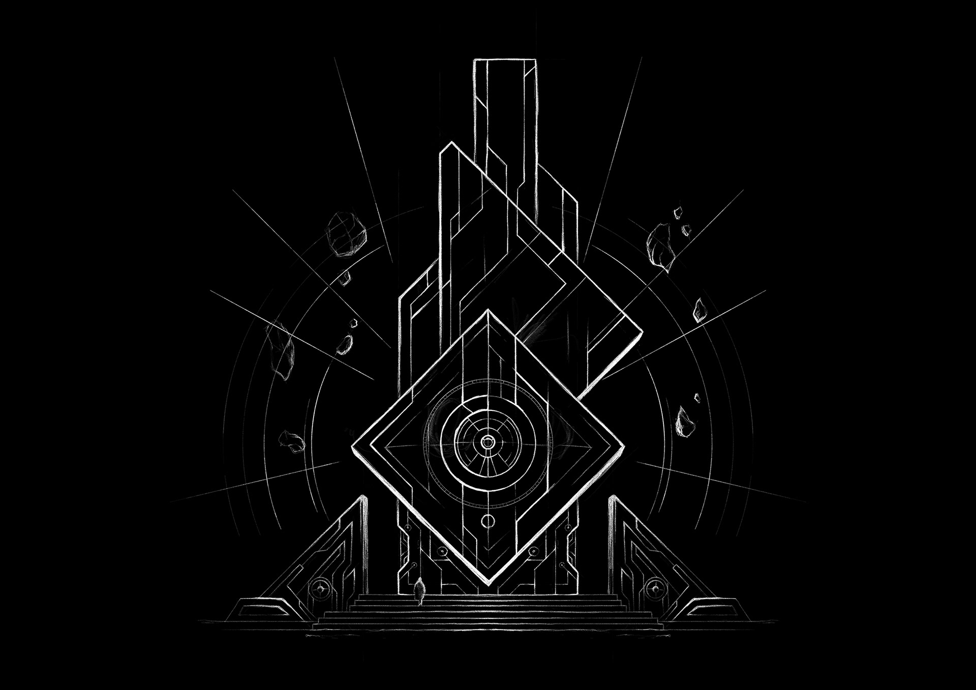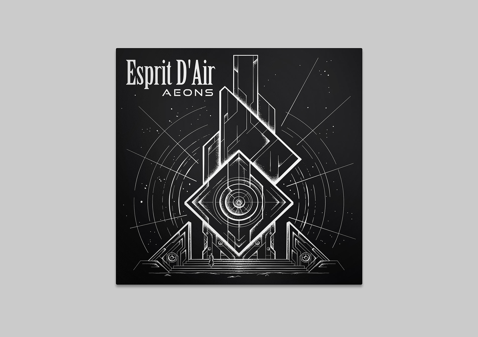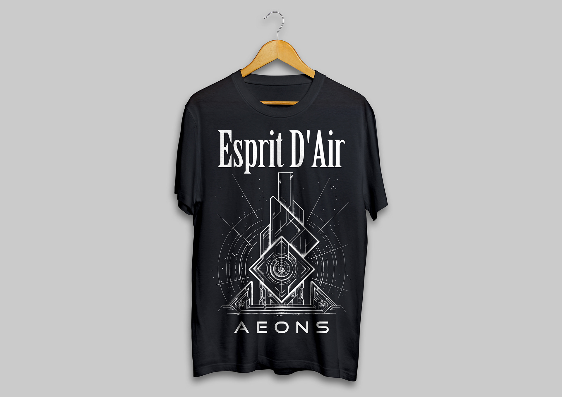Vector-based artwork was created for the band Esprit D'Air and their album Aeons. The central focus of the artwork is a ancient monolith depicting sci-fi geometric patterns which was then carefully adapted to fit a t-shirt design to go with the final CD cover artwork.