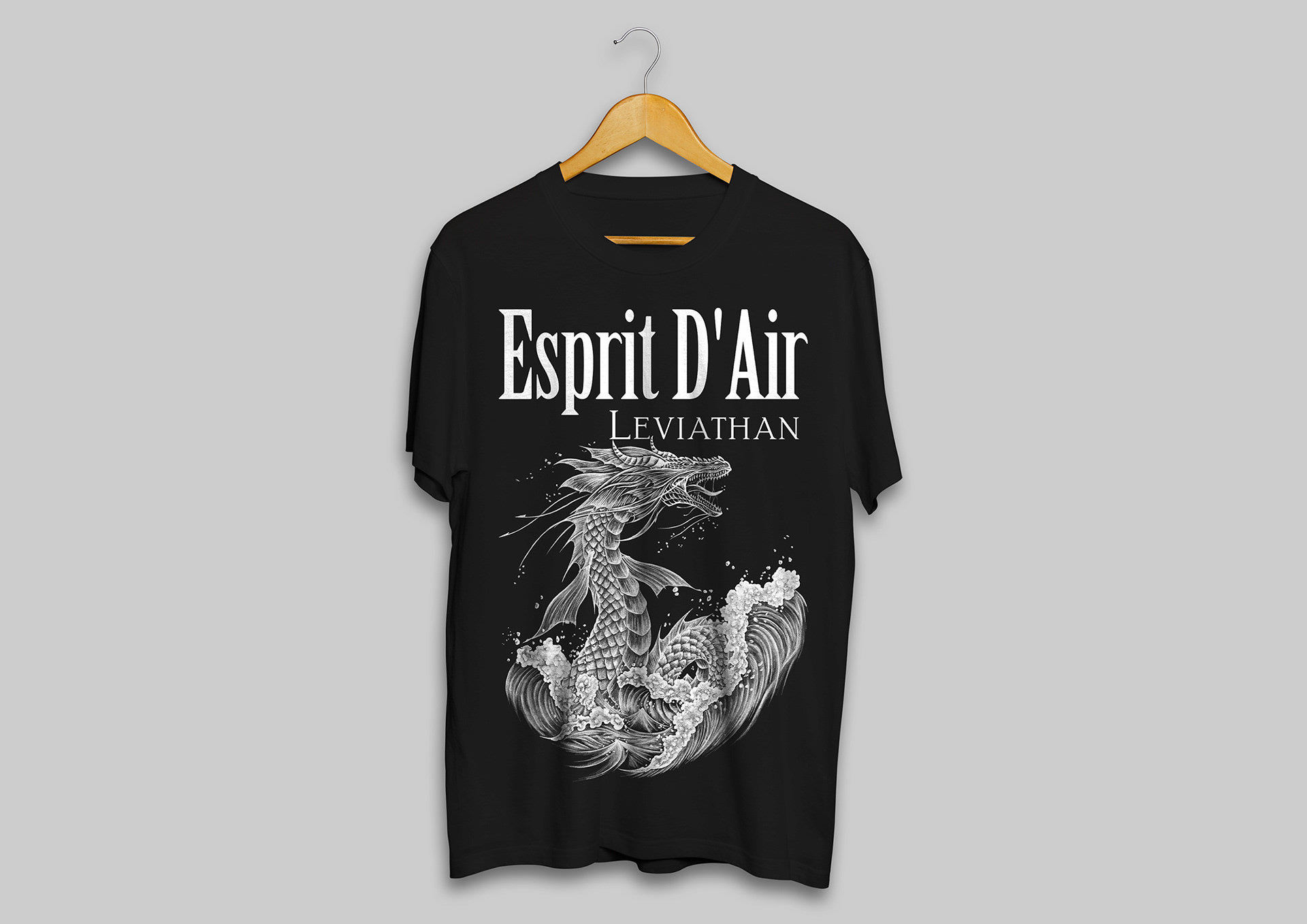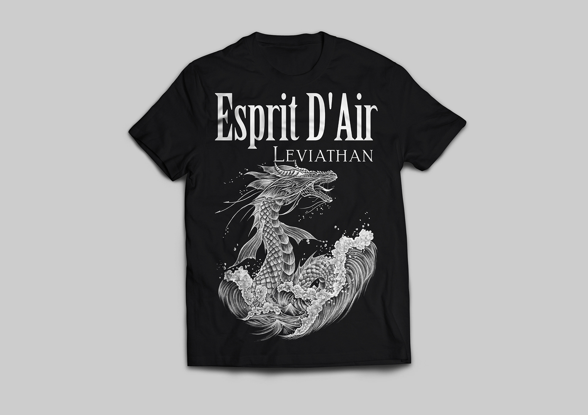 Japanese electronic rock/metal band Esprit D’Air commissioned a new merchandise design to accompany their 2023/2024 European tour. Drawing on themes inspired by mythical leviathan creatures and incorporating subtle Japanese influences, the final concept features original artwork rendered in a hand-drawn pencil style.