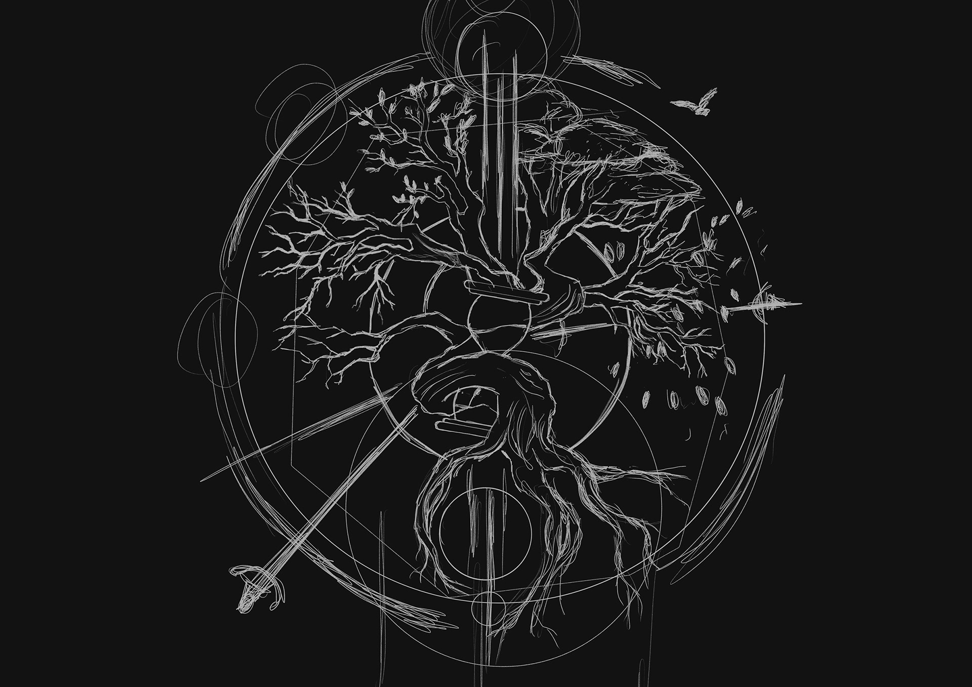 Vector-based artwork was created for the band Esprit D'Air and their album Seasons. At the centre of the design is a symbolic tree representing the four seasons, with one side in full bloom and the other side shedding leaves. Additional elements, such as a sand timer and geometric shapes to form a clock-like structure, are included to signify the passage of time. The artwork was then carefully adapted to fit both a t-shirt design and a square-shaped CD cover.