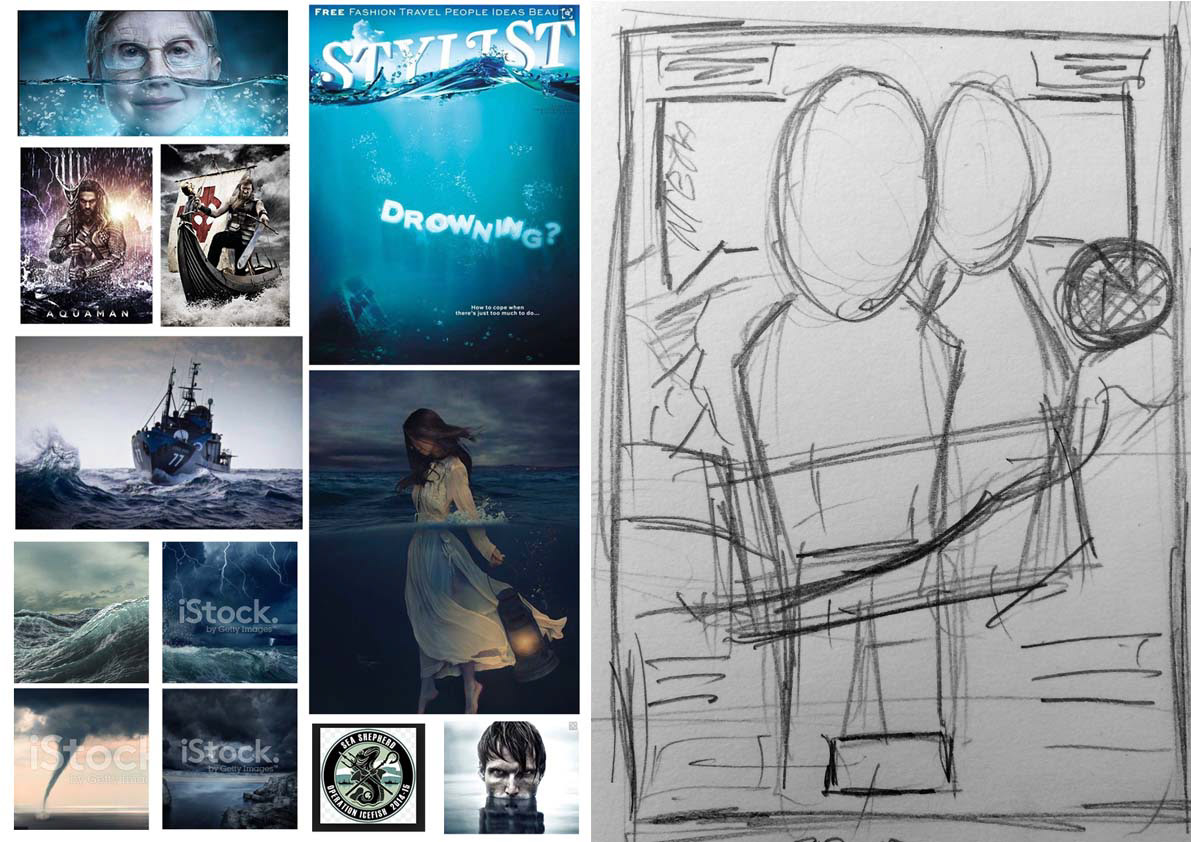 After a bit of thought, I knew that Steve Brown would be the photographer to create the final image, so I came up with a mood board and sketched some ideas that would work as intended with his photography and photoshop skills. Letting the images do the work for the hard main package and getting Magictorch to create some floating text for the cover reveal and the opening feature I was able to tie it all together into a package we could be proud of for a bands cover debut.