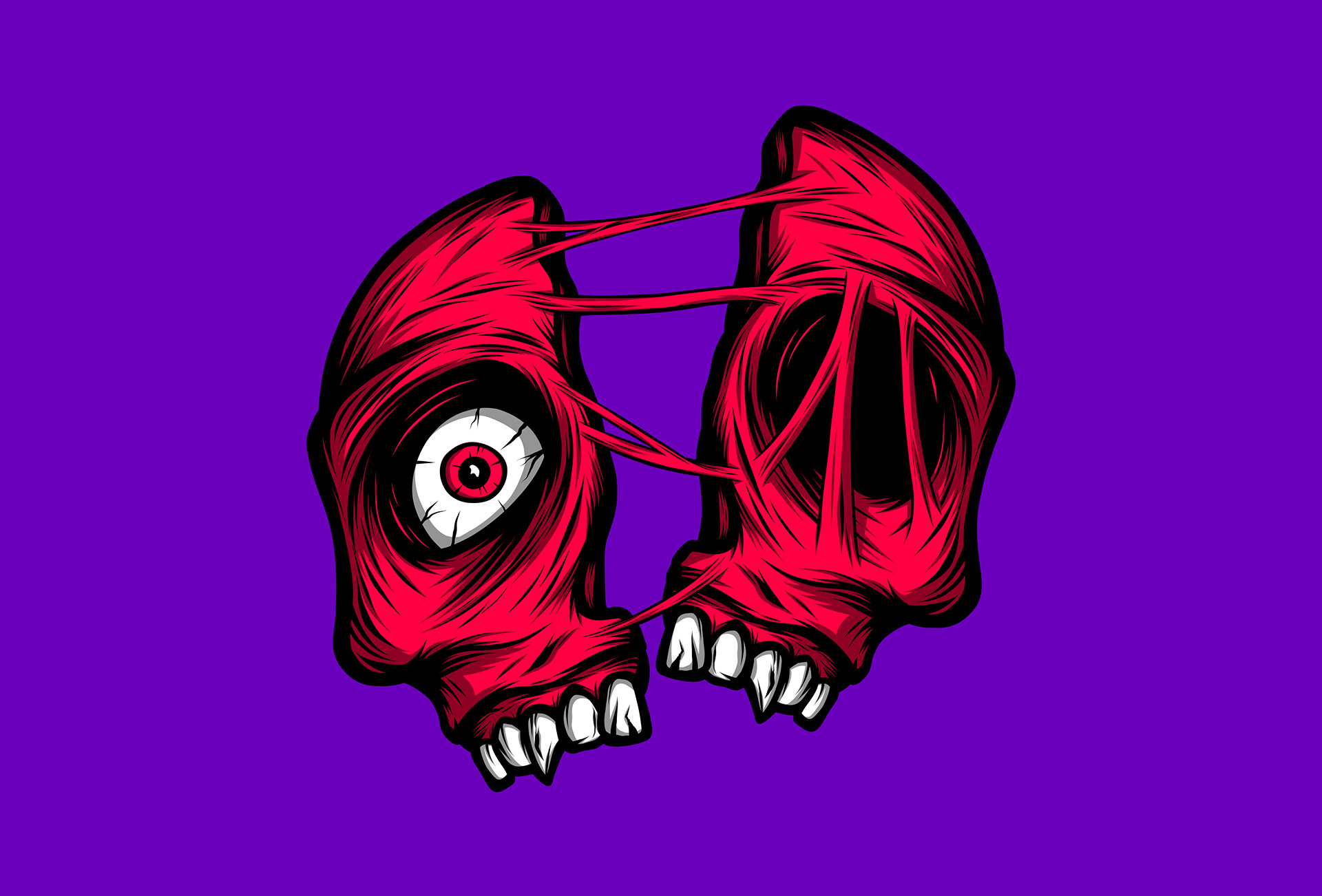 Head splitting skull illustration to mark Halloween 2022.