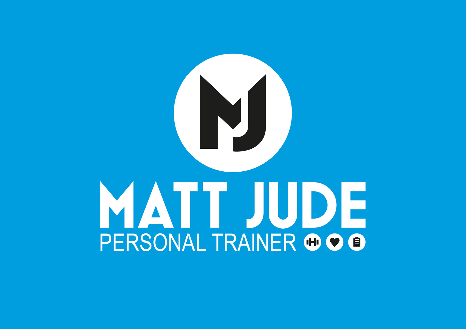 A clean, minimal logo concept for Matt Jude, a freelance personal trainer based in London. This design features a distinctive monogram combining the letters M and J into a strong, recognisable logo mark and adding matching gym icons for use on his marketing and website.