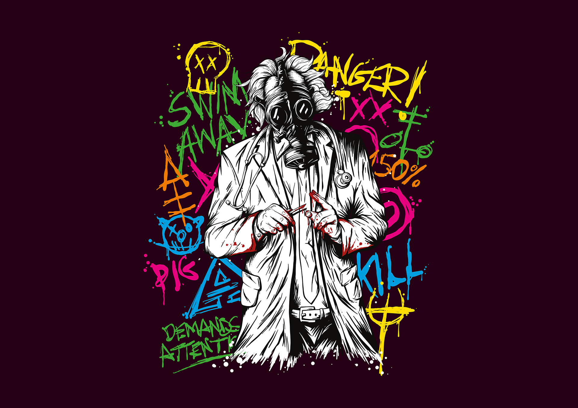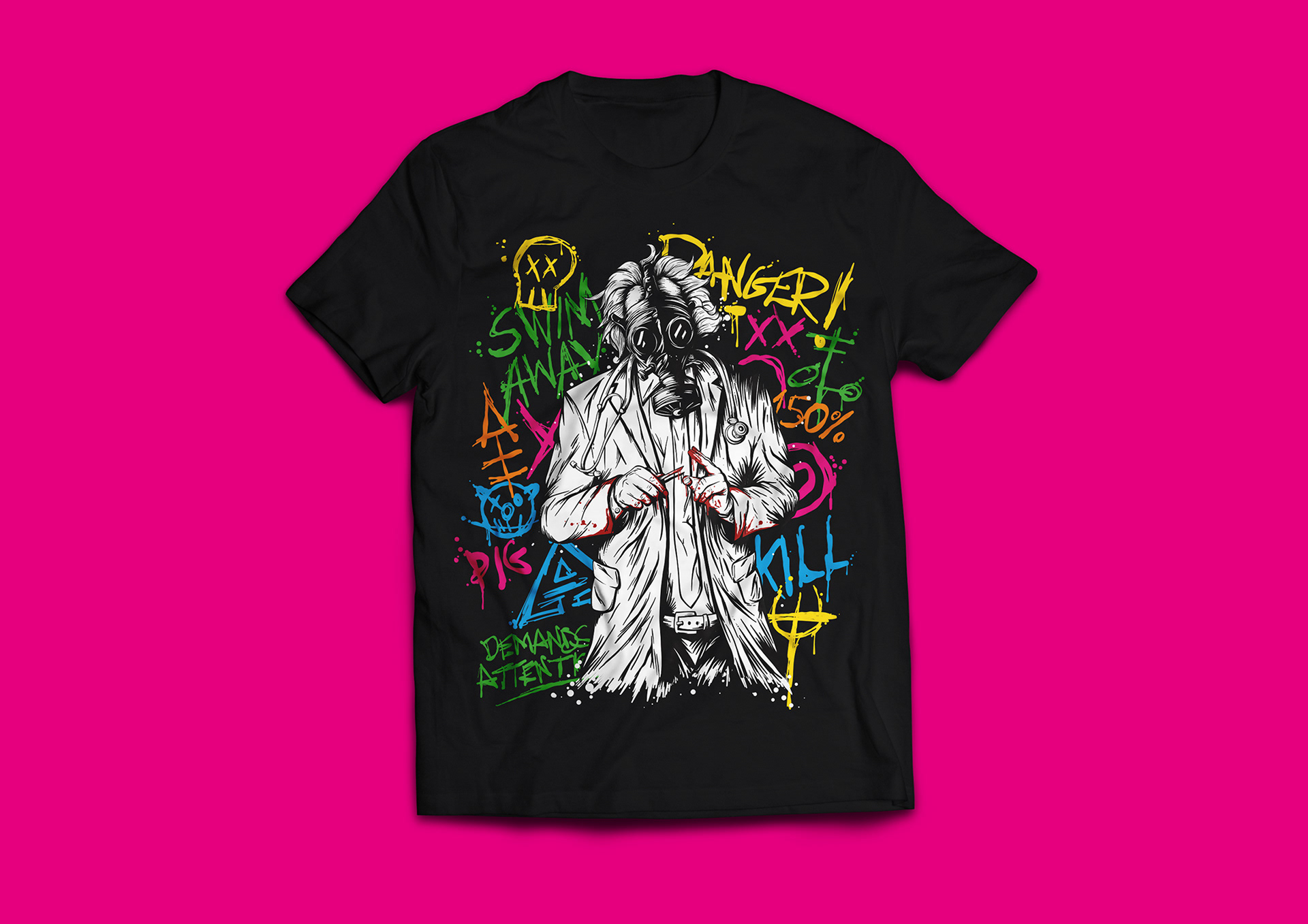 T-shirt design created for Tallah’s album The Generation of Danger. The artwork brings the album’s mad scientist character to life with a bold, dynamic illustration.