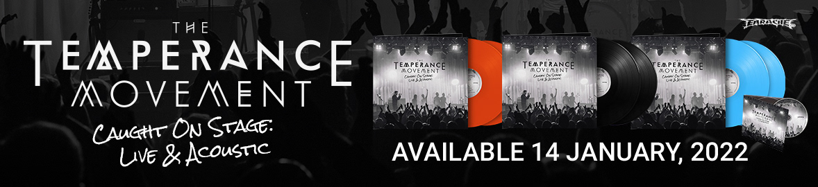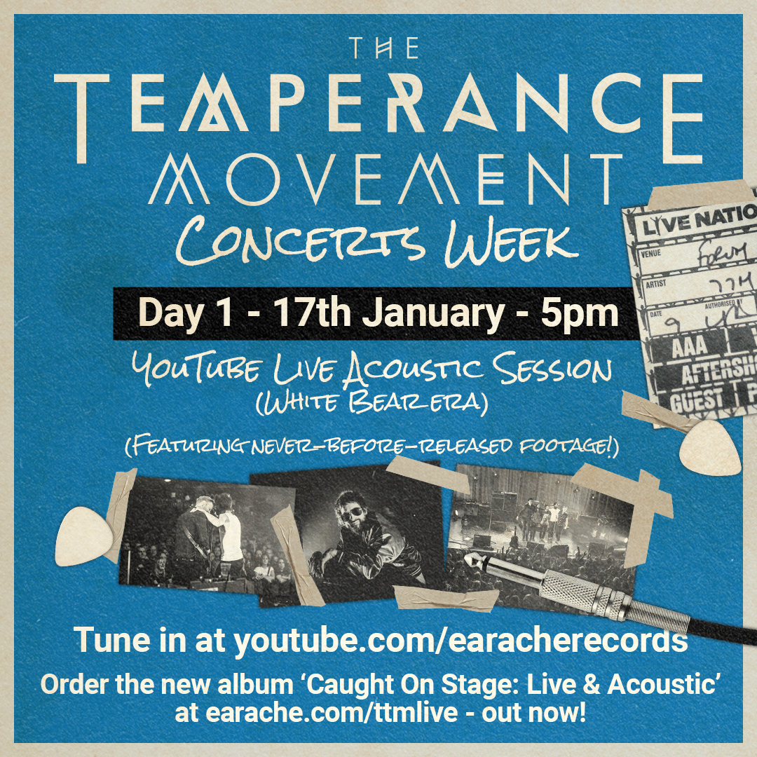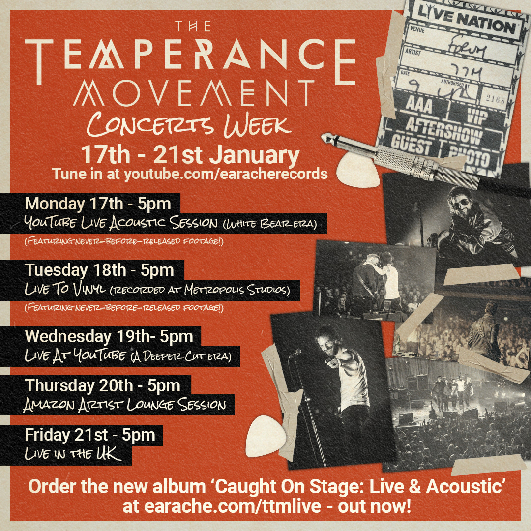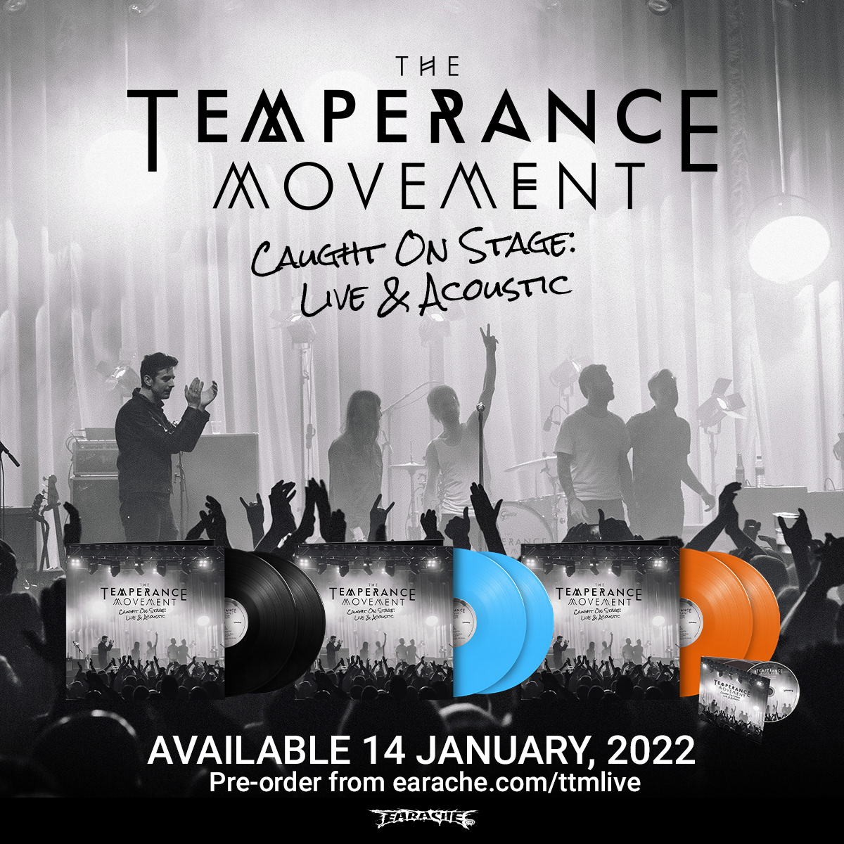 Layouts and marketing assets for the live album 'Caught On Stage: Live & Acoustic' by The Temperance Movement.