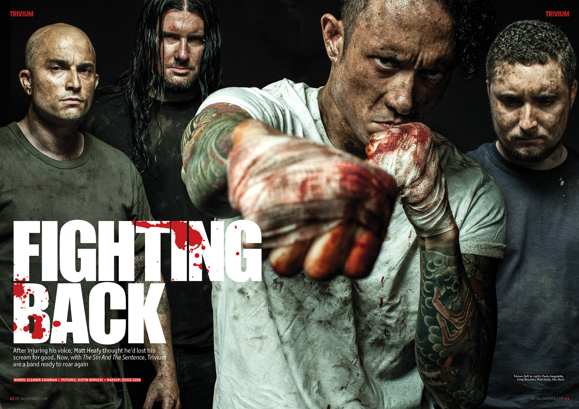 Using a previous photoshoot by Justin Borucki, I retouched and composited the original images of the band to create a striking new cover and feature images that captured Trivium’s intensity and aesthetic. The final design went down well with fans with the entire bundle selling out within just a few hours of release